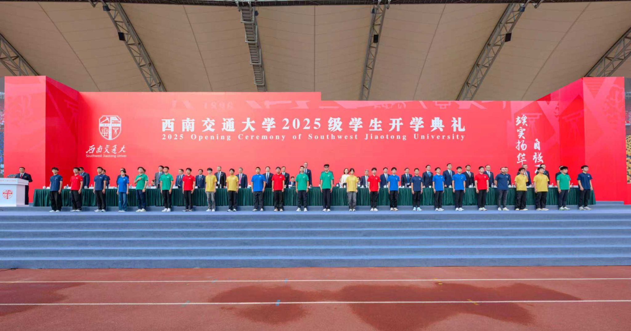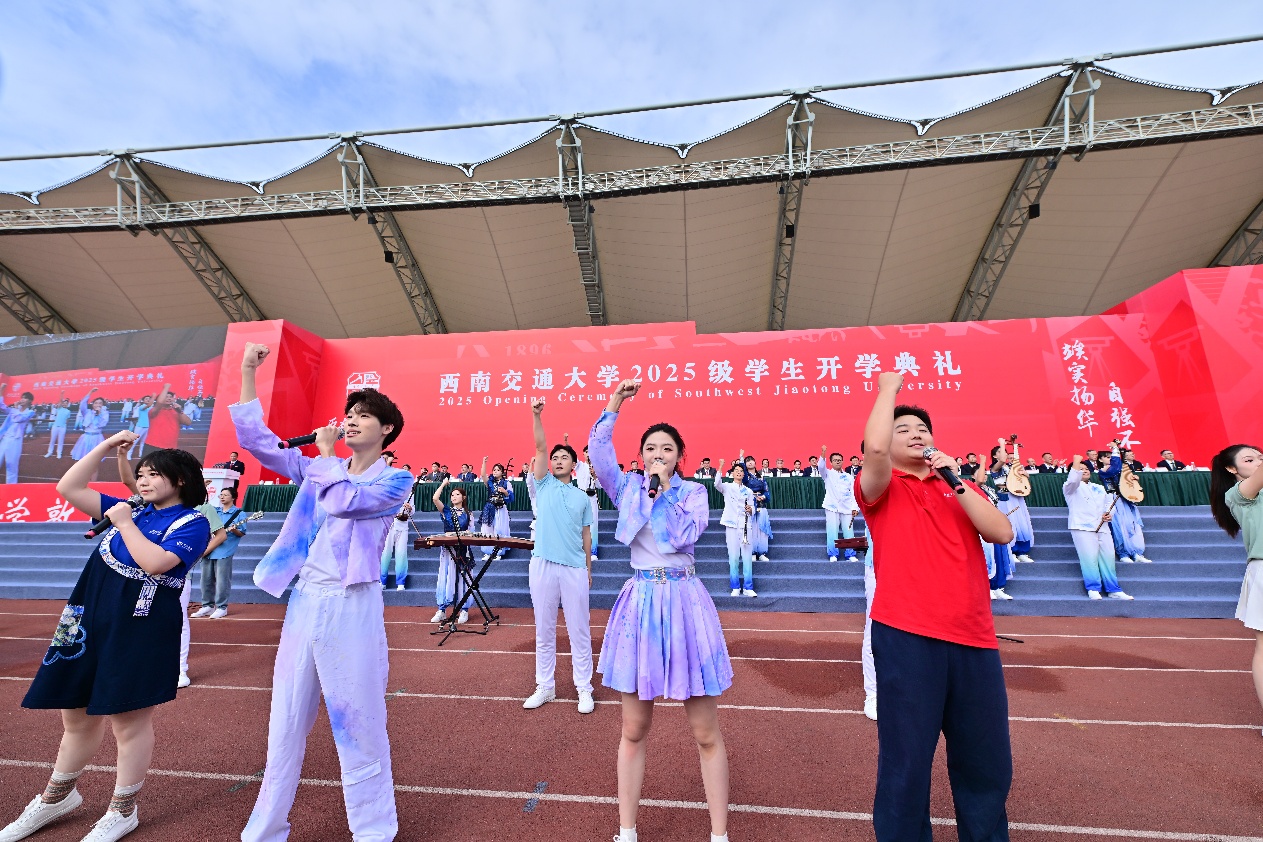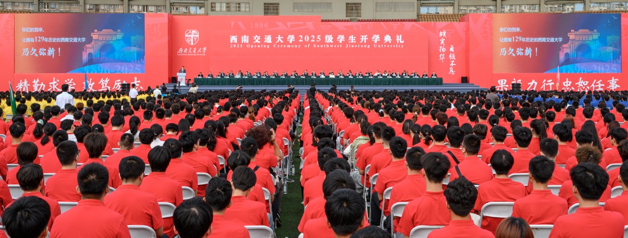 随着校歌铿锵有力的旋律奏响,西南交通大学2025级学生开学典礼落下帷幕。崭新的人生征程已然开启,2025级新交大人必将怀揣“今日之我,定胜昨日之我”的昂扬朝气,敏于求知、勤于学习、敢于创新、勇于实践,在中国式现代化的伟大实践中,奋力书写新时代交大人的青春华章!