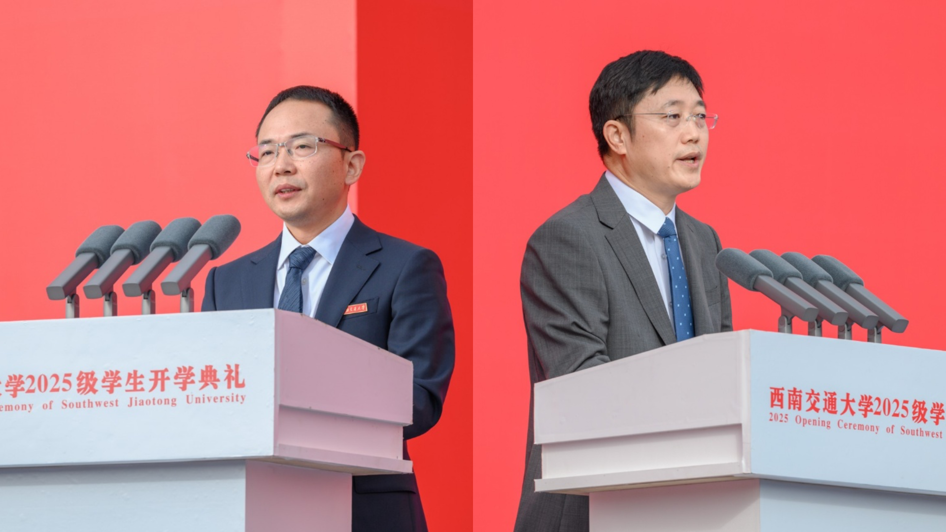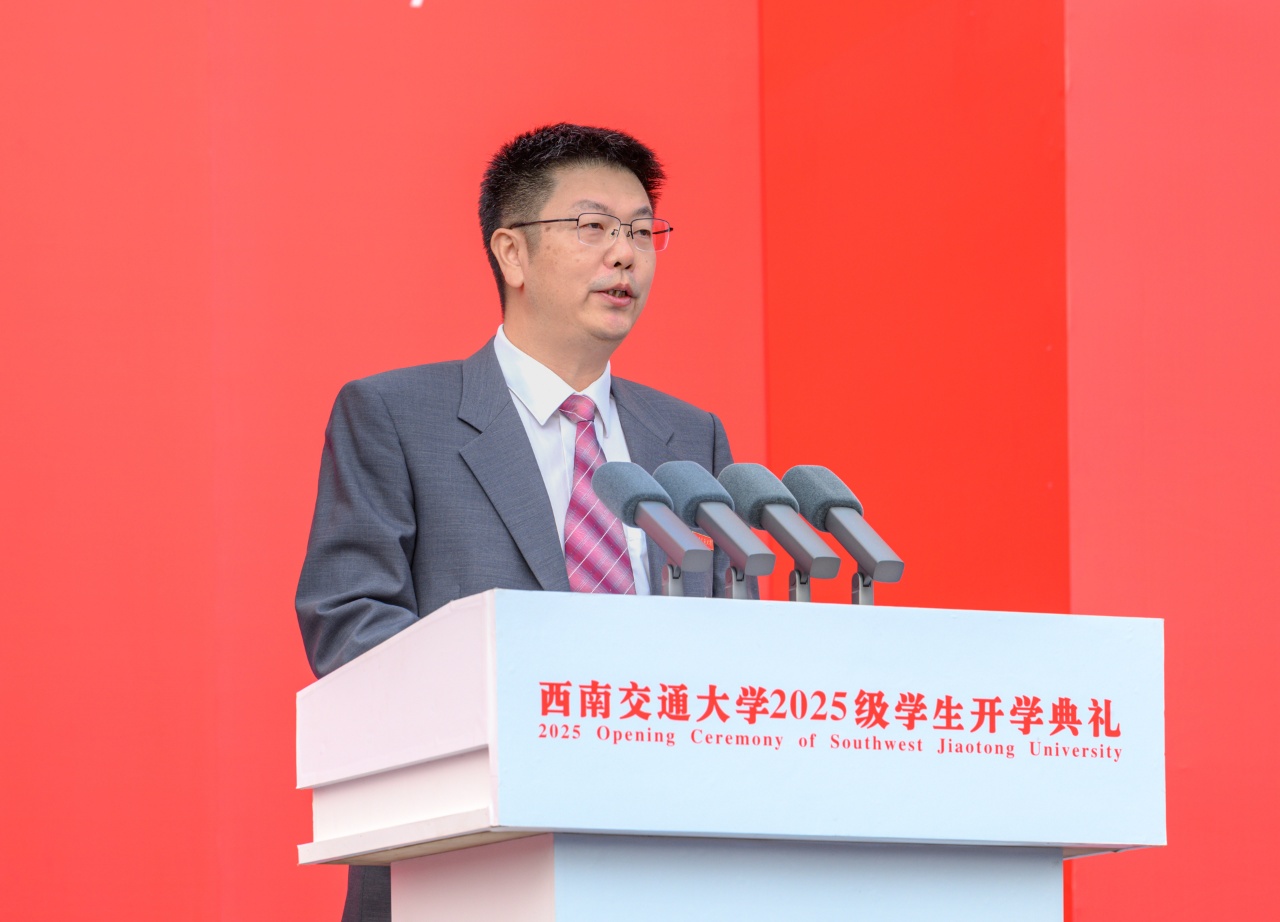 9月7日上午,西南交通大学2025级学生开学典礼在犀浦校区北区体育场举行,并通过网络连线形式在九里校区詹天佑体育馆、大学生会堂、国际会议厅及峨眉校区明诚堂同步进行。学校党委书记余敏明,校长闫学东,教育部党建工作联络员石坚,全体在校校领导、党委常委、校长助理,成都市实验外国语学校校长刘元华,相关职能部处、各学院(中心、实验室)负责人和教师代表等出席开学典礼。典礼由学校党委副书记高平平主持。
