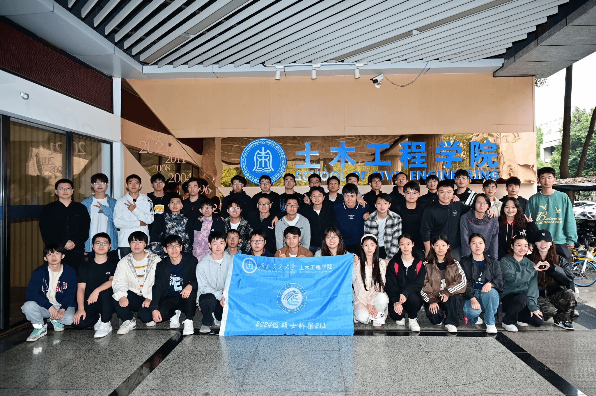土木工程学院2024级硕士桥梁2班,以“弘毅拓新,笃行致远;跨越无界,博学审问”为班训,凭借扎实的思想建设、突出的科研实力、优异的学业成绩和浓厚的集体氛围,始终坚持全面发展理念,荣获西南交通大学“忠忱班集体”荣誉称号。这个由54名青年学子组成的集体,其中党员24名,团员22名,在科研攻坚与集体成长的道路上并肩前行,书写着新时代桥梁人的担当与使命。